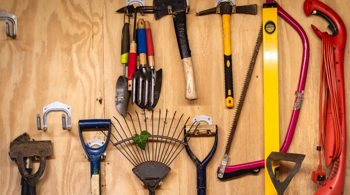 After your tools are cleaned up and sharpened, it’s a good idea to put mineral oil on them before storing them for the season. Store them somewhere they will stay dry and clean when not being used and where they’re easily accessible when you need them. A simple rake rack is a great option because it can hold multiple tools and keeps them off the ground.