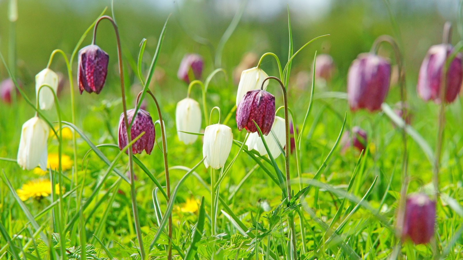 Another single species combination that works perfectly together is purple and white Fritillaria meleagris. The graceful partnership showcases the contrast of delicate stems and pendulous bell blooms in checkered purple and solid white. The subtle beauties make unique borders and naturalized planting additions.