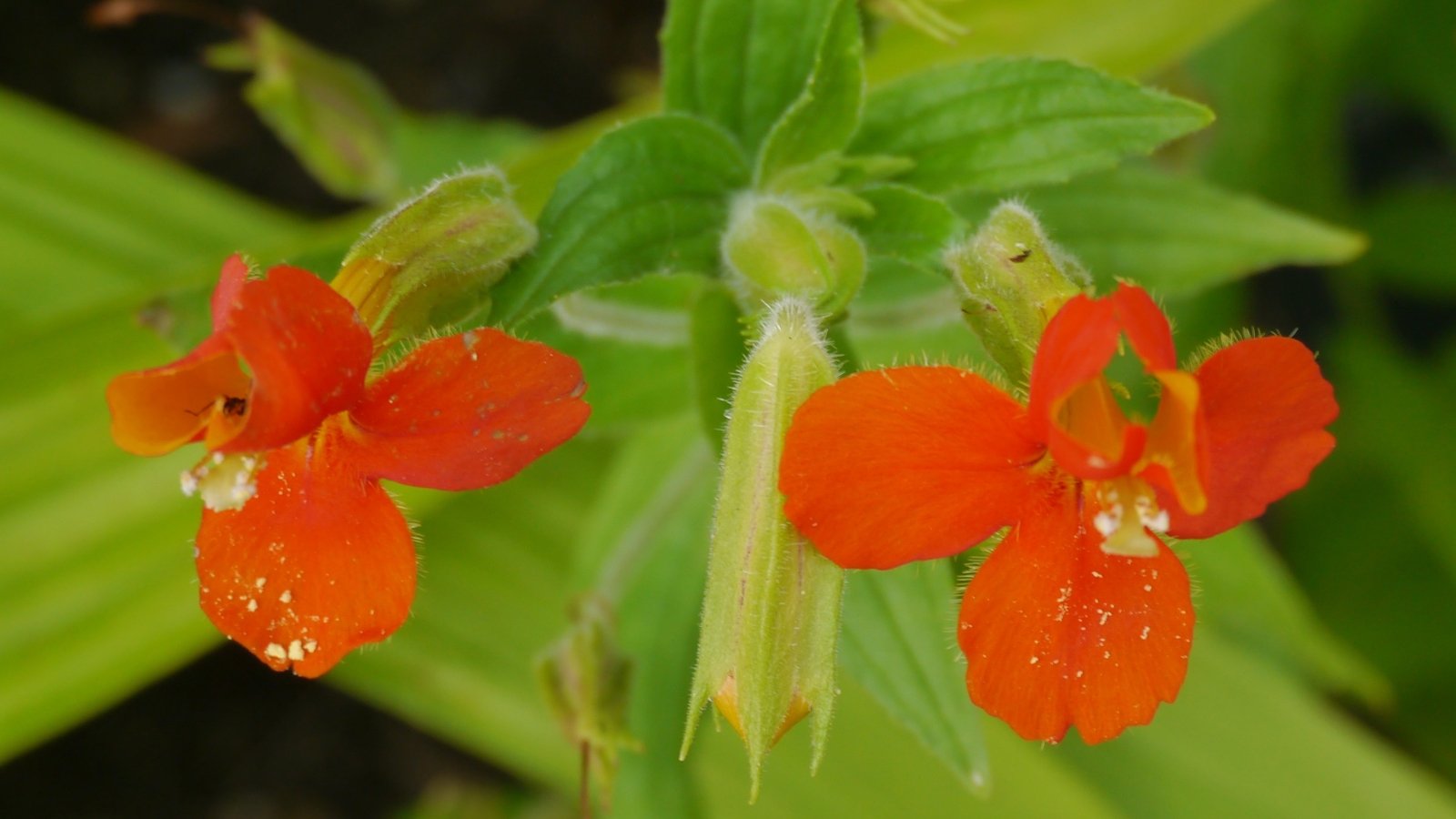 Monkeyflower is a genus of flowering annuals and perennials, depending on the species. M. cardinalis naturalizes in optimal growing conditions and withstands zone 6 with sheltered winter protection.