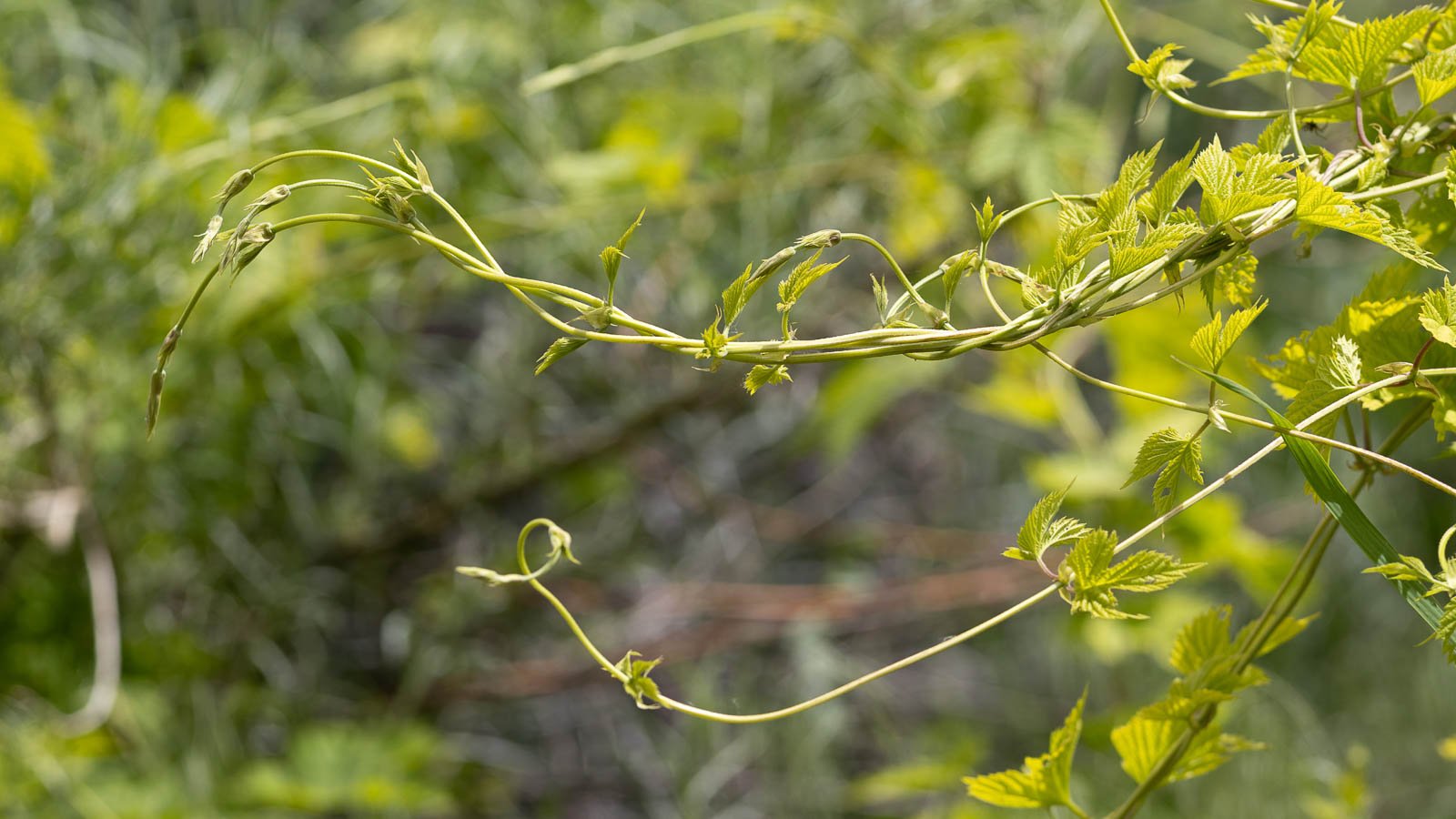 Pruning is essential for any vine growth, bines included. Starting the second year, clip back new shoots early in the season before training begins. This will ensure strong and full secondary bines each year.