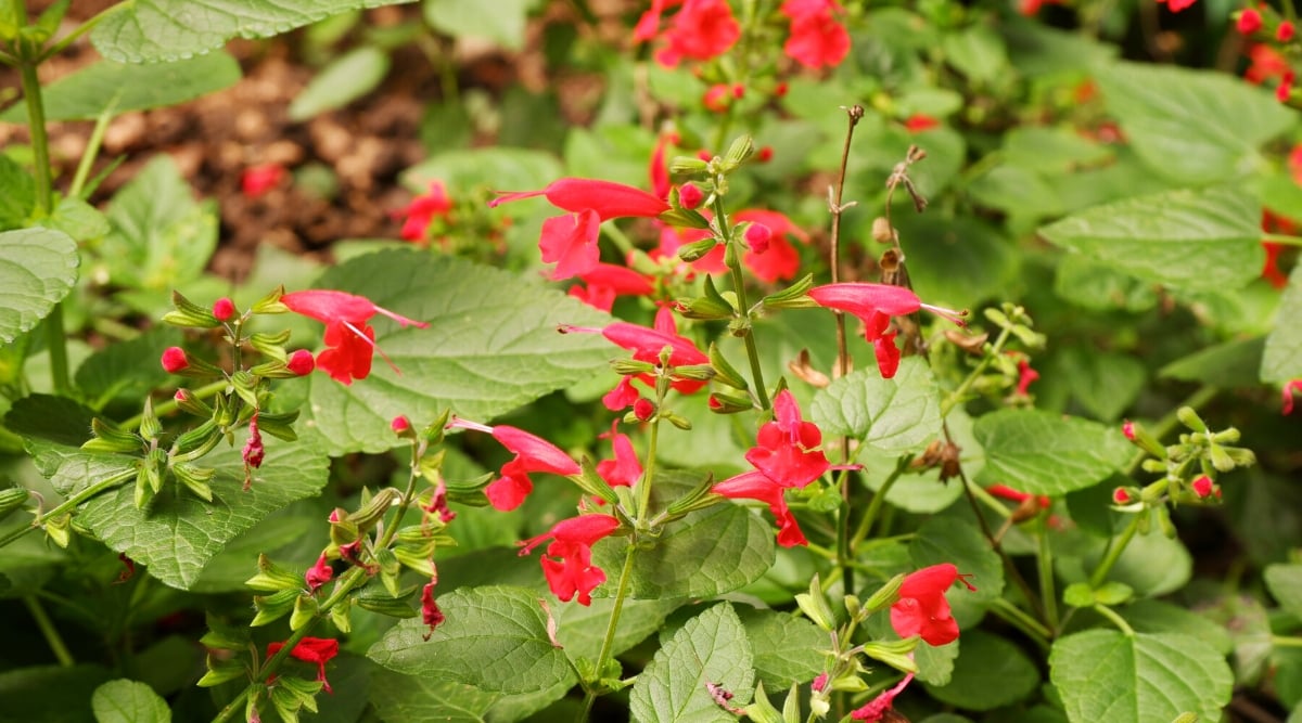 Scarlet sage, also known as Texas sage, has brilliant red flowers that bloom from mid-summer through early fall. The flowers bloom in loose clusters along flowering spikes and are tube-shaped. Hummingbirds and butterflies love these flowers and will visit frequently during their long blooming period.