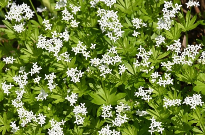 As a final fragrant, frilly lawn option, sweet woodruff is a lovely creeping perennial that effortlessly colonizes shady areas. It grows from rhizomes and spreads into a dense ground cover that effectively outcompetes weeds. The rough-textured leaves are arranged in whorls around the stems, creating a uniquely captivating bright green visual on your lawn.