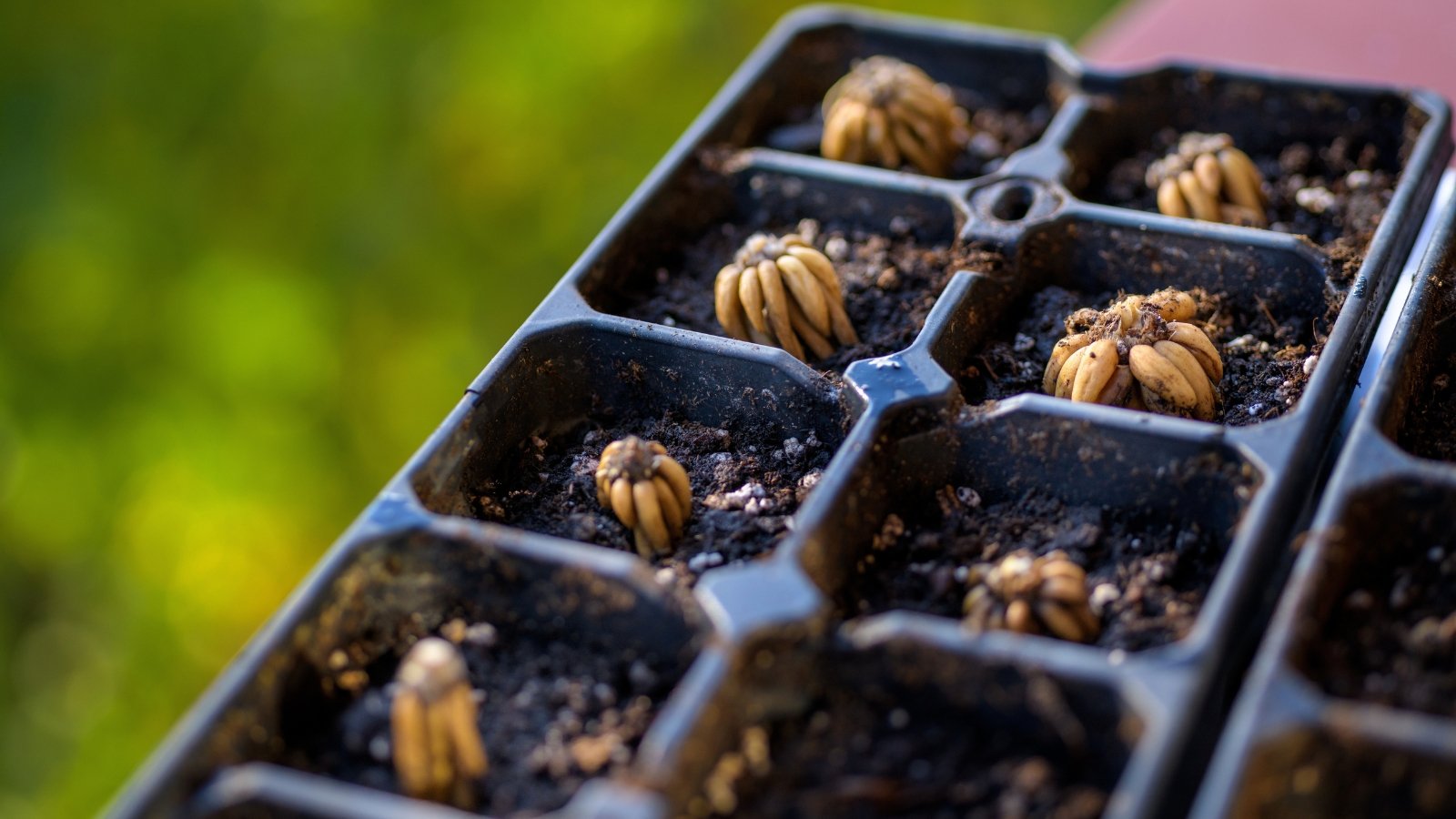 Before planting, it’s helpful to soak your corms. This helps to speed up the germination time, and they will sprout sooner. The most important factor when you soak them is time. Because they are corms and not seeds, you don’t want to soak them for very long, or they will rot.