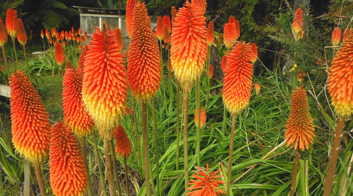 These striking flowers grow 1-4’ tall and 2-3’ wide, blooming stunning spike-shaped red and yellow blooms in midsummer. The plants enjoy moist soils but tolerate drought in rock gardens as well.